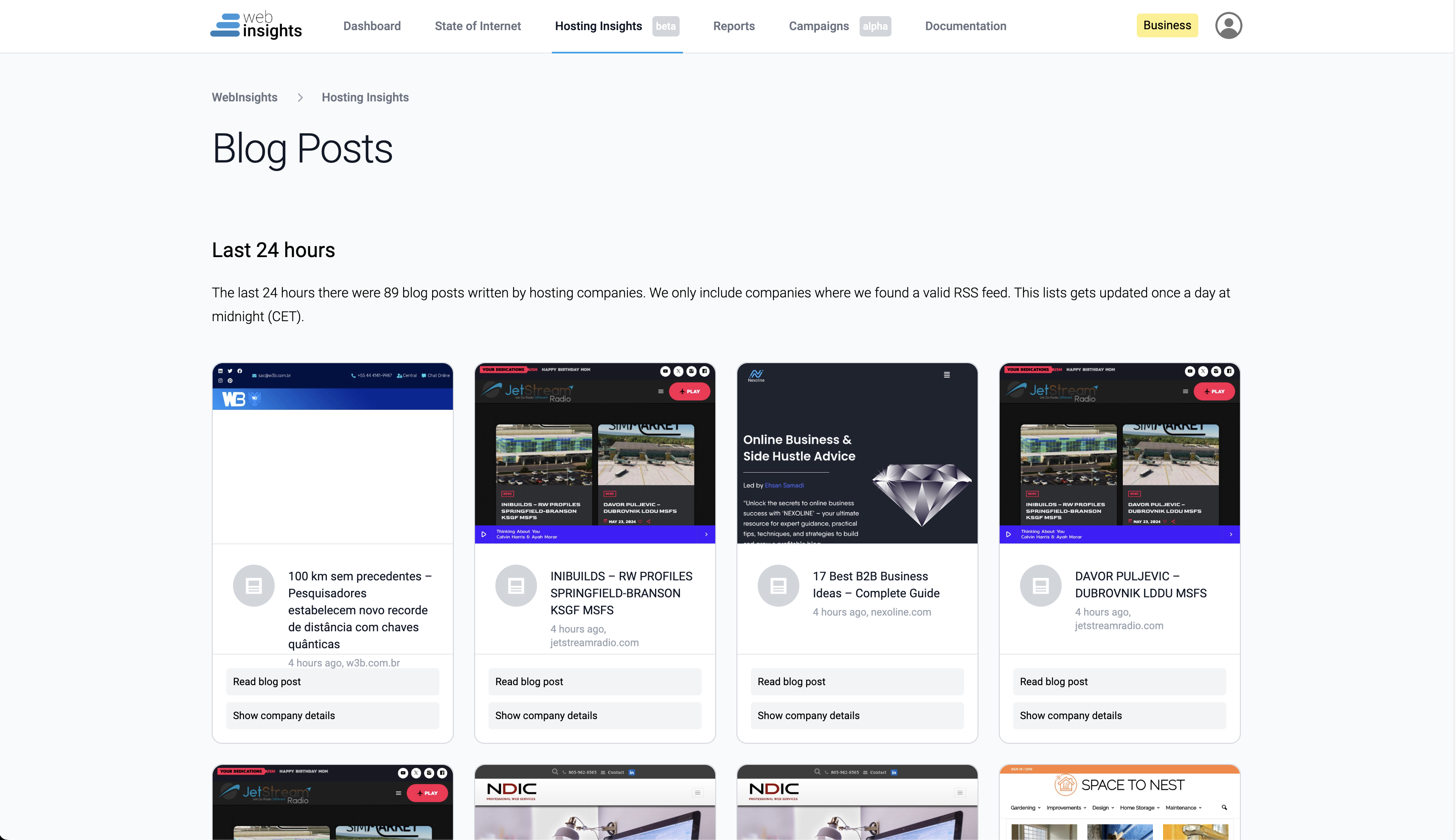 Hosting Insights freeOn a weekly base we visit the homepage of more than 10.000 hosting companies. We know products, prices, autonomous systems and customers.